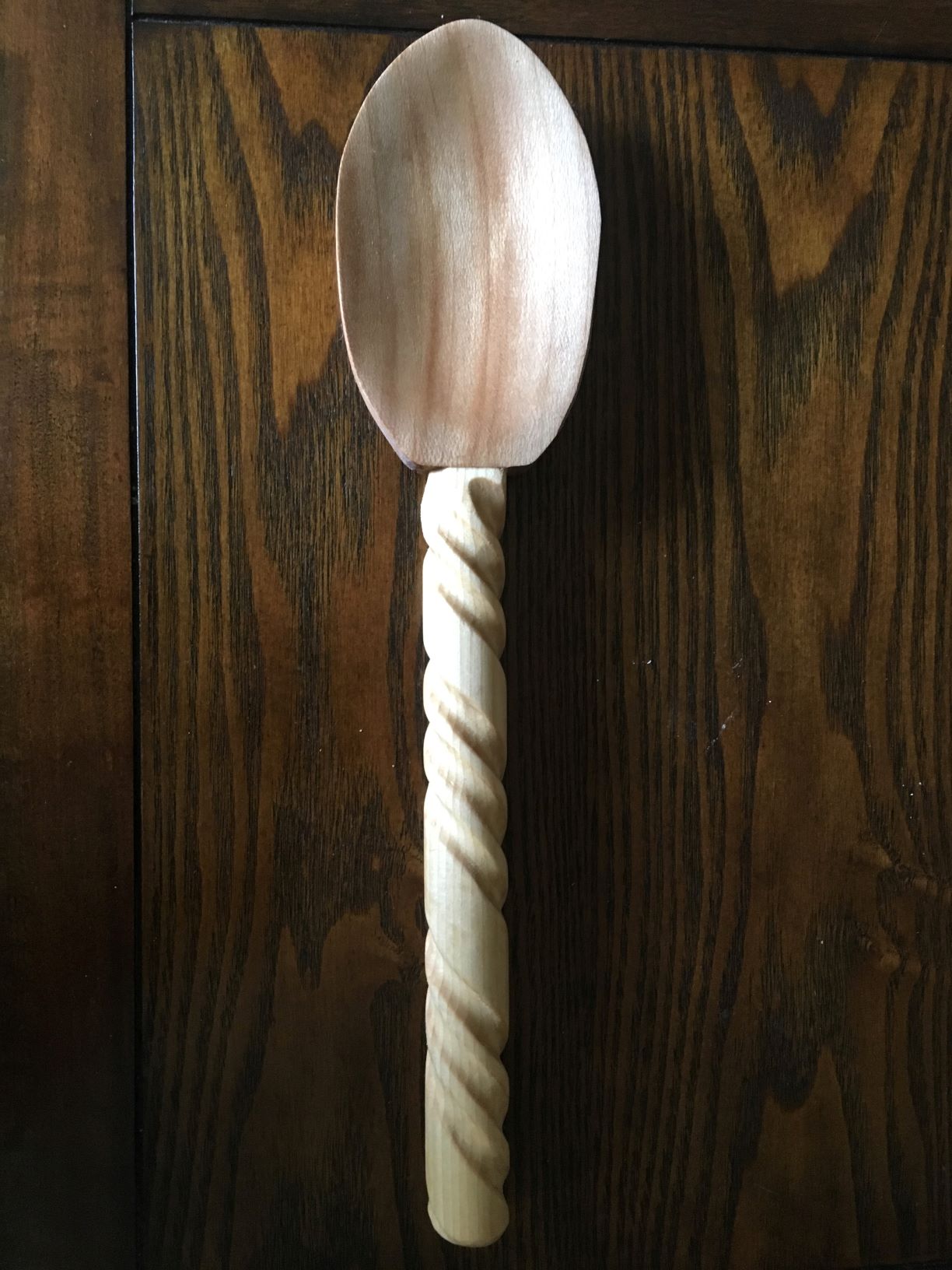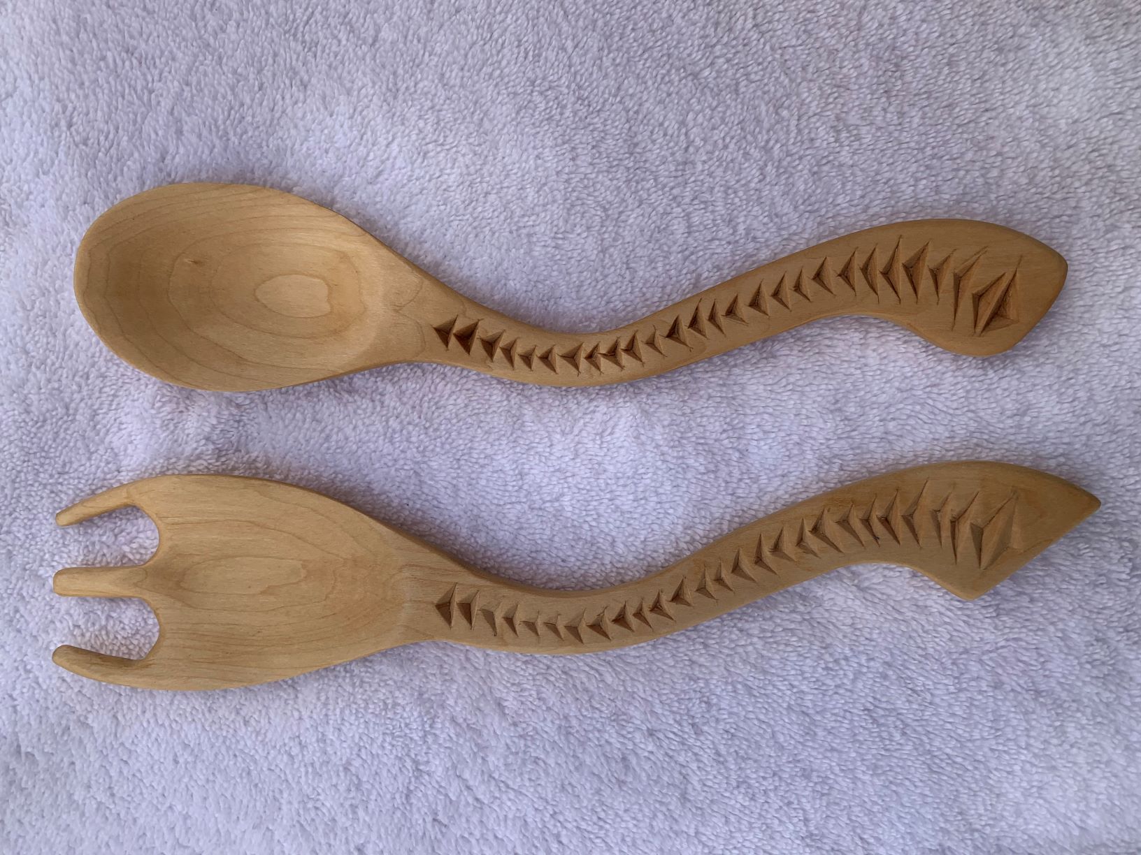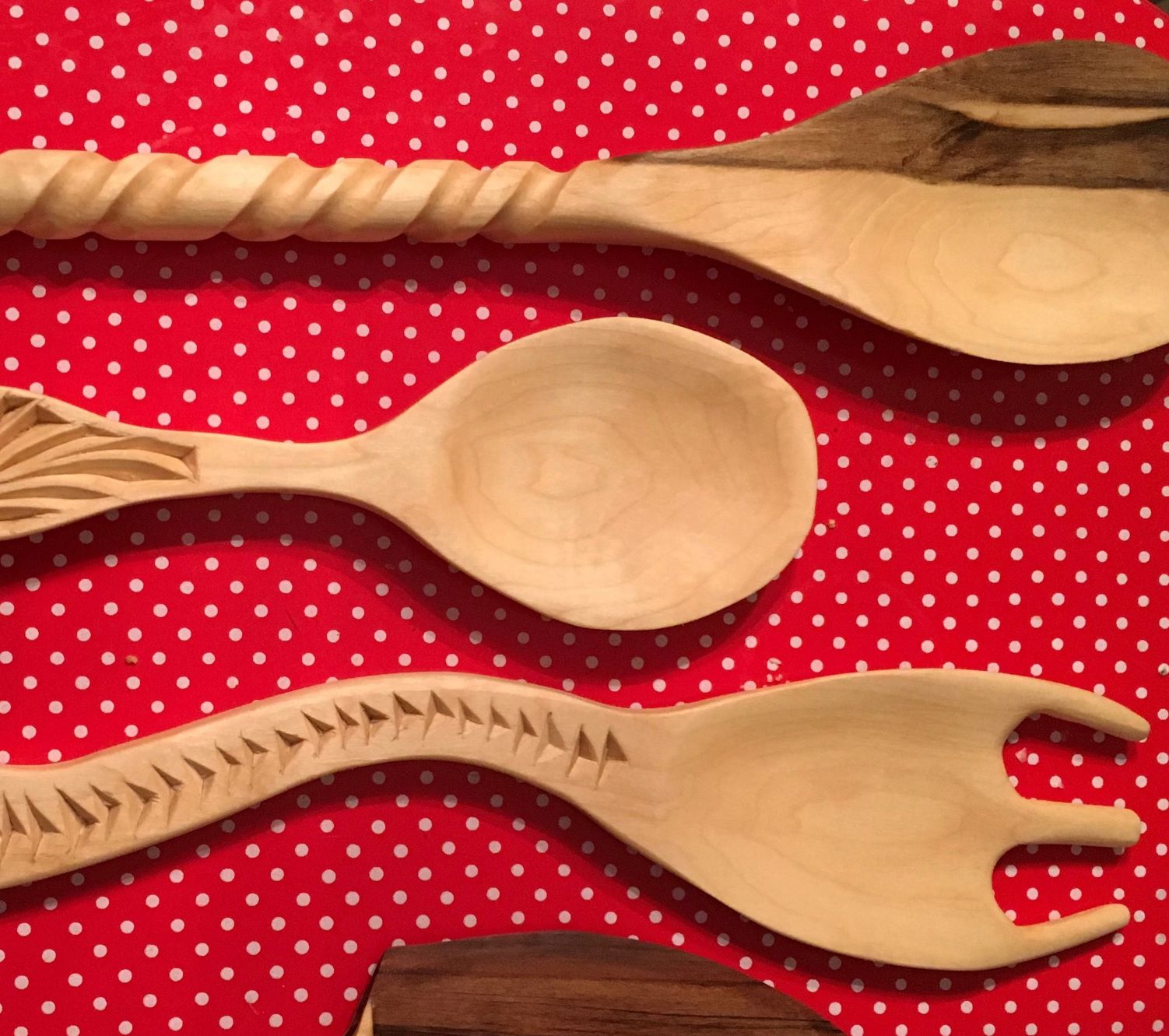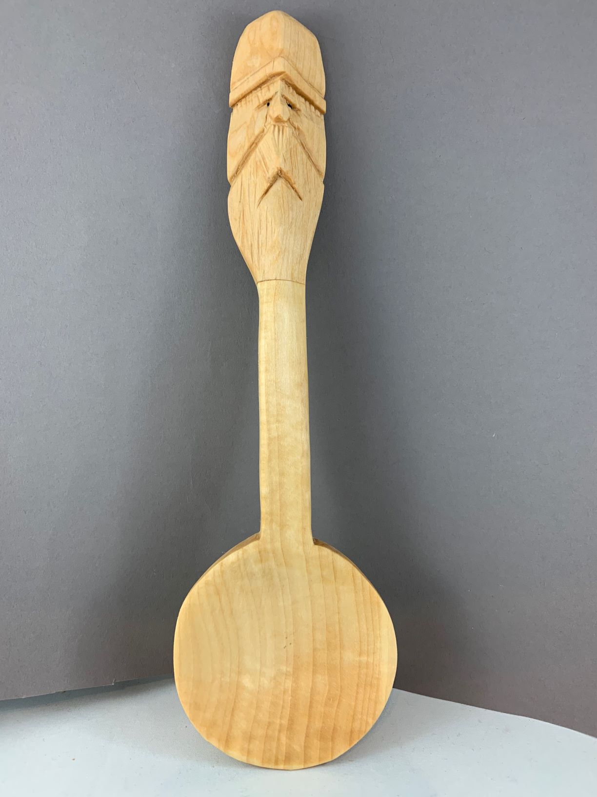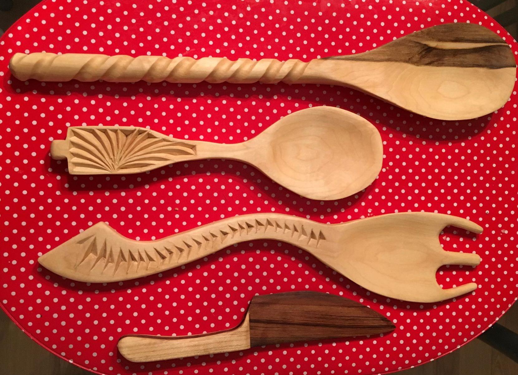 In 2019 he decided to change to a different medium: Hand carved wood pieces such as spoons, scoops, cheese knives spreaders, small carved figures and Christmas tree decorations.