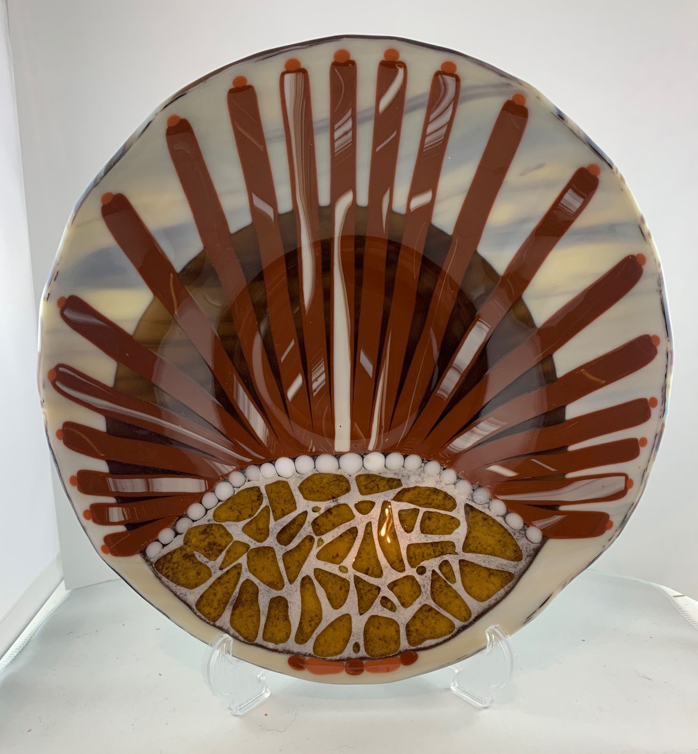 Born and currently living in Calgary, Hellen has had a lifetime of experience honing her artistic talents from the Rocky Mountains to the beautiful 1000 Islands area of the St. Lawrence River, including art studies in Montreal, Kingston, Brockville and ACAD here in Calgary. Hellen has been working with textiles for many years and is well-known for her painted silk clothing, accessories and wall hangings. However , today she is totally immersed in designing fused / slumped glass creating functional glass dishes, wall art pieces , lanterns as well as Christmas decor.